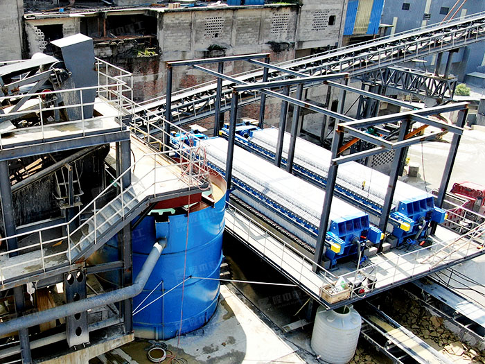 尾礦脫水系統可以處理70%~80%左右的尾礦,尾礦含水率15%~20%,干尾礦可以直接通過皮帶運輸到...